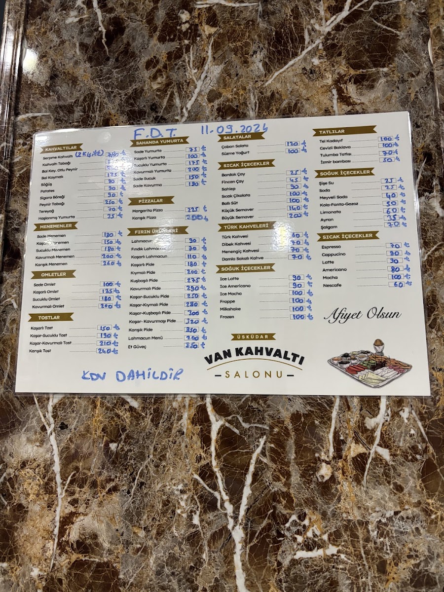 Üsküdar Van Kahvaltı Salonu Cafe & Restaurant Menu